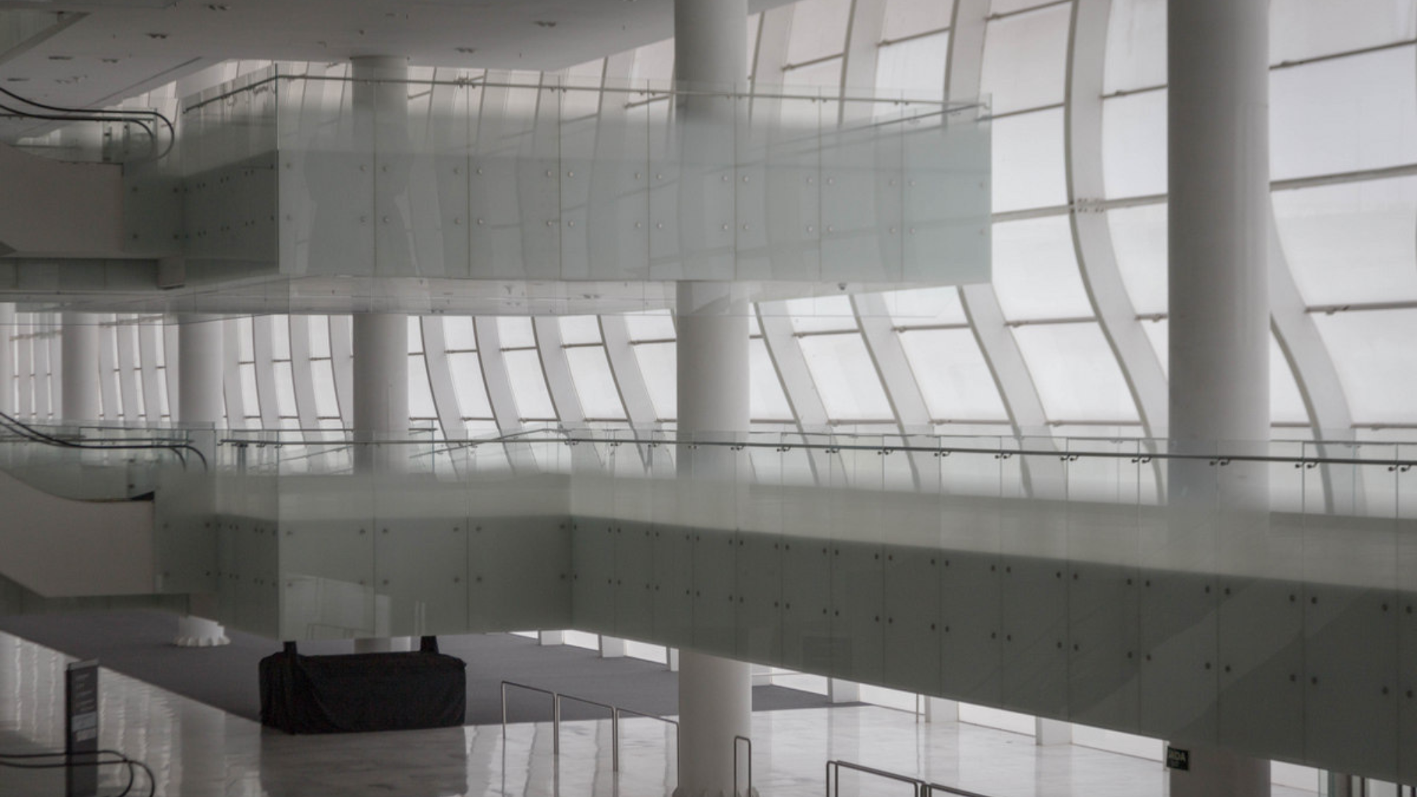 Unique architectural design with vertical stands creating dramatic angles